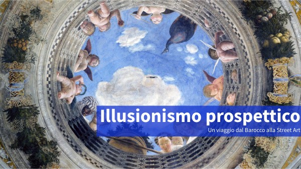 La raffigurazione delle architetture, delle pose, degli sguardi dei soggetti e del punto di vista dal basso, rappresentano un perfetto esempio di illusionismo prospettico.