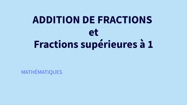 ADDITION DE FRACTIONS et Fractions supérieures à 1