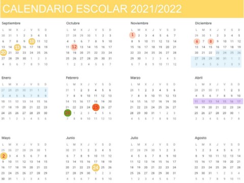 Calendario escolar 2021/2022 Sevilla