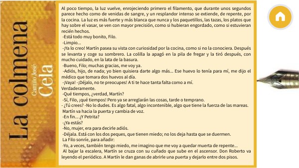 Martín pasea su vista con curiosidad por la cocina, como si no la conociera. Después se levanta y coge su sombrero. La colilla la apagó en la pila de fregar y la tiró después, con mucho cuidado, en la lata de la basura. -Bueno, Filo; muchas gracias, me voy ya. -Adiós, hijo, de nada; yo bien quisiera darte algo más... Ese huevo lo tenía para mí, me dijo el médico que tomara dos huevos al día. -¡Vaya!