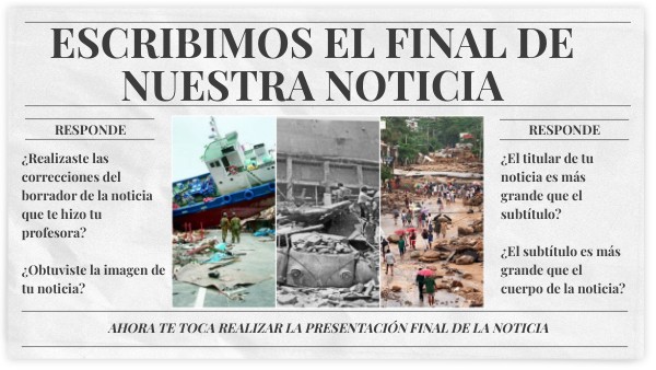 ¿Realizaste las correcciones del borrador de la noticia que te hizo tu profesora? ¿Obtuviste la imagen de tu noticia?