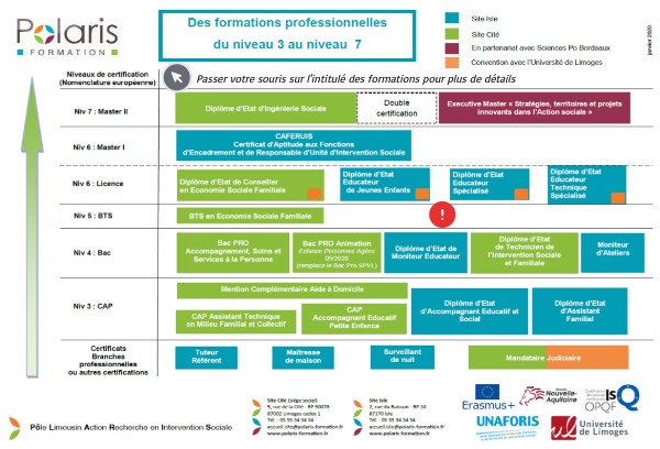 Schéma interactif des formations sociales proposées à Polaris Formation