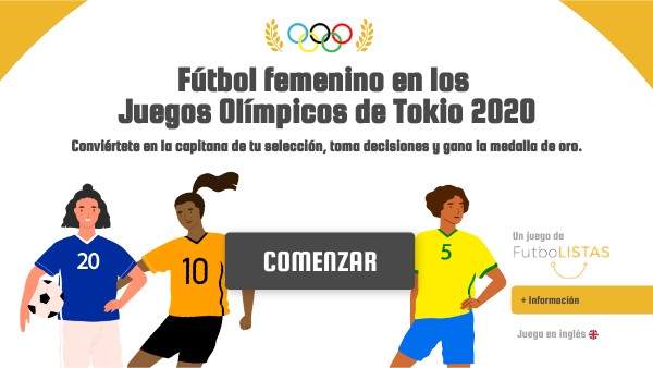 Videojuego educativo sobre el torneo de fútbol femenino en los Juegos Olímpicos de Tokio 2020. Se refuerzan valores de vida propios del deporte de manera divertida y está especialmente recomendado para menores en edad escolar. | Creado por FutboLISTAS (Sevilla).