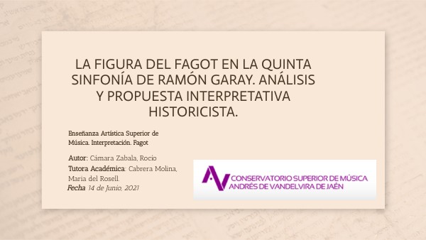 Trabajo Fin de Estudios - La figura del fagot en la Quinta Sinfonía de Ramón Garay. Análisis y propuesta interpretativa historicista.