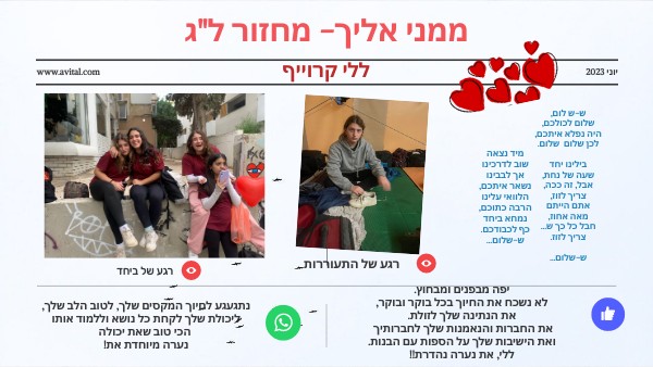 נתגעגע לחיוך המקסים שלך, לטוב הלב שלך, ליכולת שלך לקחת כל נושא וללמוד אותו הכי טוב שאת יכולה נערה מיוחדת את!