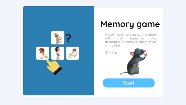 Match each character’s picture with their respective role, according to Remy’s explanation in the film.