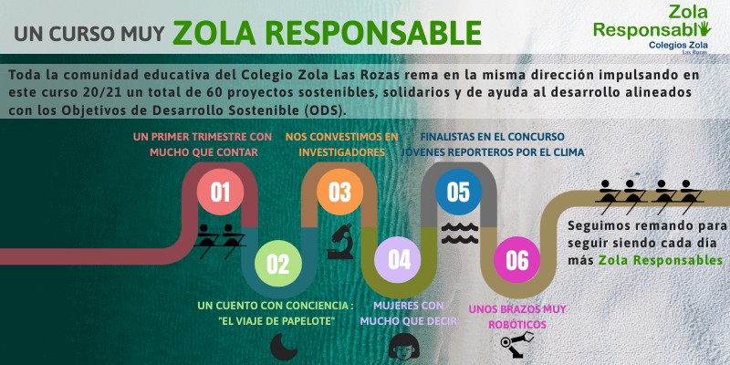 Toda la comunidad educativa del Colegio Zola Las Rozas rema en la misma dirección impulsando en este curso 20/21 un total de 60 proyectos sostenibles, solidarios y de ayuda al desarrollo alineados con los Objetivos de Desarrollo Sostenible (ODS).