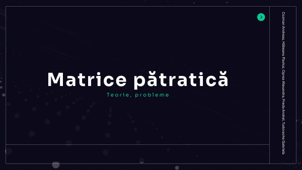 O matrice pătratică este matrice pătratică, dacă numărul de linii este egal cu numărul de coloane. Numele său vine de la forma de pătrat, toate laturile fiind egale.