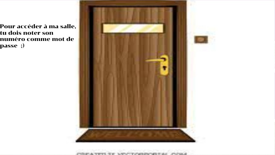 Pour accéder à ma salle, tu dois noter son numéro comme mot de passe ;)