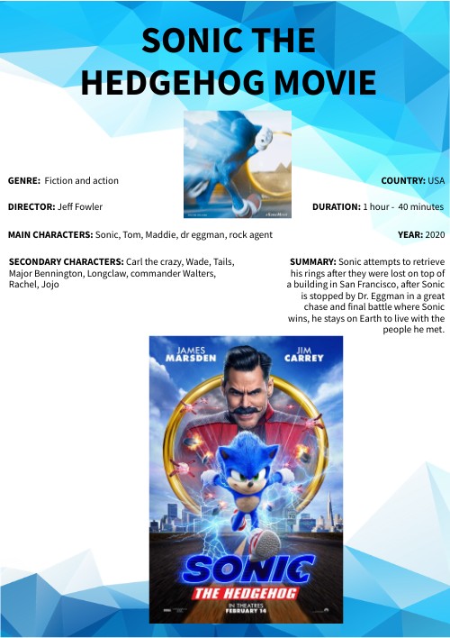 MAIN CHARACTERS: Sonic, Tom, Maddie, dr eggman, rock agent