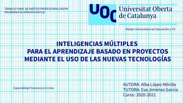 INTELIGENCIAS MÚLTIPLES PARA EL APRENDIZAJE BASADO EN PROYECTOS MEDIANTE EL USO DE LAS NUEVAS TECNOLOGÍAS