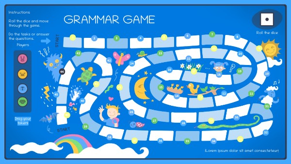 Instructions Roll the dice and move through the game. Do the tasks or answer the questions.