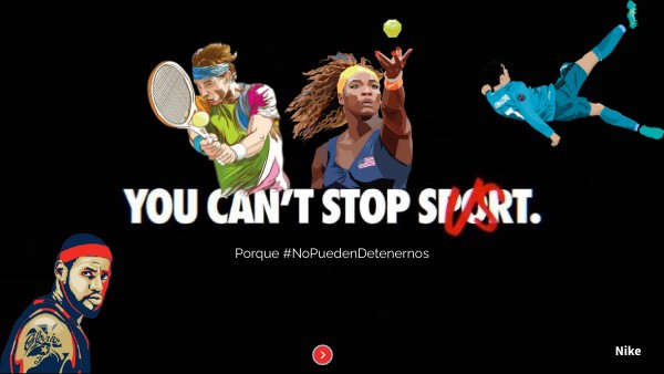 Es abordada en el promocional de Nike, asegurando en el texto que presenta su campaña que: "Nada puede detener lo que hacemos juntos. No pueden detener el deporte.