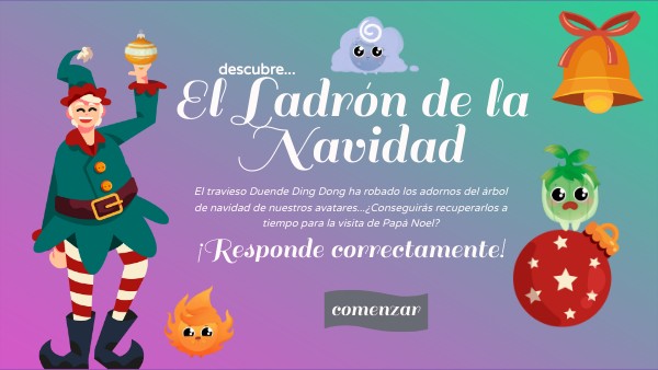 El travieso Duende Ding Dong ha robado los adornos del árbol de navidad de nuestros avatares...¿Conseguirás recuperarlos a tiempo para la visita de Papá Noel?