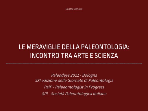 Paleodays 2021 - BolognaXXI edizione delle Giornate di Paleontologia PaiP - Palaeontologist in Progress SPI - Società Paleontologica Italiana