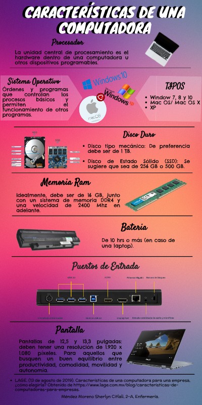 LAGE. (13 de agosto de 2019). Características de una computadora para una empresa, ¿cómo elegirla? Obtenido de https://www.lage.com.mx/blog/caracteristicas-de-computadoras-para-empresas.