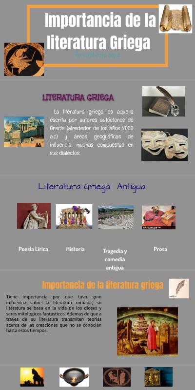 La literatura griega es aquella escrita por autores autóctonos de Grecia (alrededor de los años 2000 a.c) y áreas geográficas de influencia; muchas compuestas en sus dialectos.