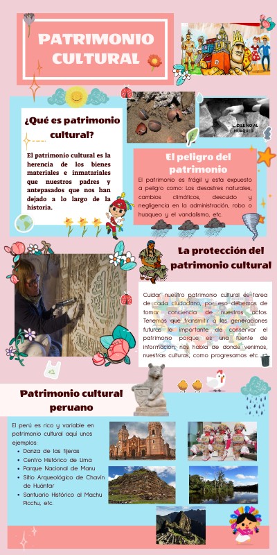 El patrimonio cultural es la herencia de los bienes materiales e inmatariales que nuestros padres y antepasados que nos han dejado a lo largo de la historia.