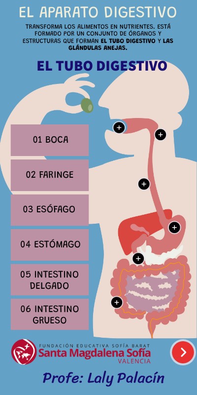 Transforma los alimentos en nutrientes. Está formado por un conjunto de órganos y estructuras que forman el TUBO DIGESTIVO y las glándulas anejas.