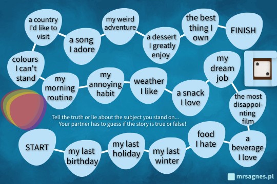 Tell the truth or lie about the subject you stand on... Your partner has to guess if the story is true or false!