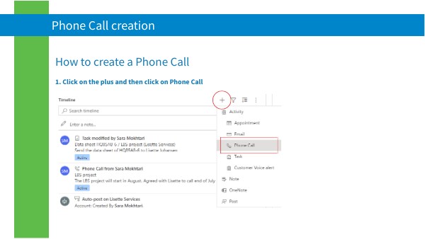 1. Click on the plus and then click on Phone Call