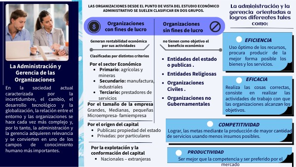 Las organizaciones desde el punto de vista del estudio económico administrativo se suelen clasificar en dos grupos.