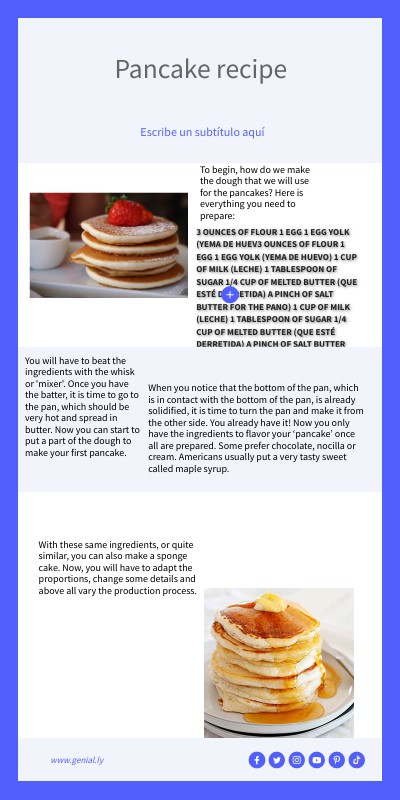 You will have to beat the ingredients with the whisk or 'mixer'. Once you have the batter, it is time to go to the pan, which should be very hot and spread in butter. Now you can start to put a part of the dough to make your first pancake.
