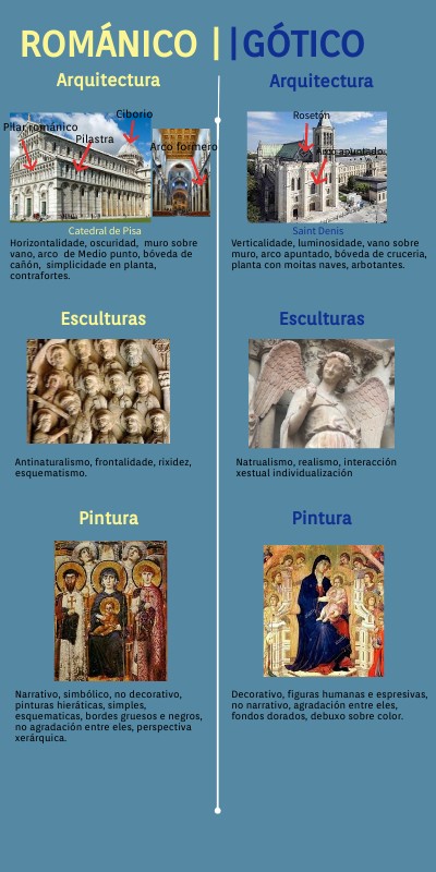 Horizontalidade, oscuridad, muro sobre vano, arco de Medio punto, bóveda de cañón, simplicidade en planta, contrafortes.