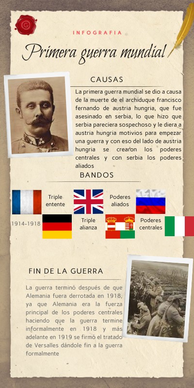 La primera guerra mundial se dio a causa de la muerte del archiduque francisco Fernando de Austria Hungría, que fue asesinado en serbia, lo que hizo que serbia pareciera sospechoso y le diera a Austria Hungría motivos para empezar una guerra y con eso del lado de Austria Hungría se crearon los poderes centrales y con serbia los poderes aliados