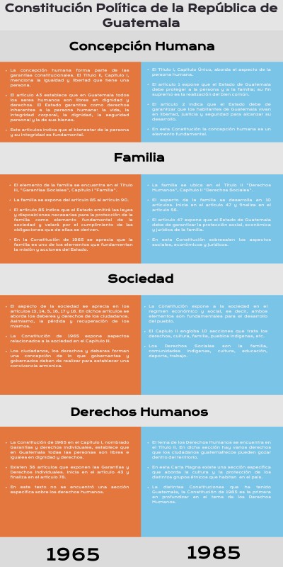 La distintas Constituciones que ha tenido Guatemala, la Constitución de 1985 es la primera en profundizar en el tema de los Derechos Humanos.
