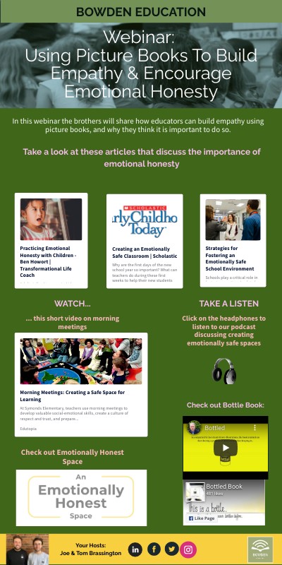 In this webinar the brothers will share how educators can build empathy using picture books, and why they think it is important to do so.