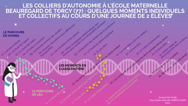 Les colliers d'autonomie à l'école maternelle Beauregard de Torcy (77) : quelques moments individuels et collectifs AU COURS d'une journée de 2 élèves