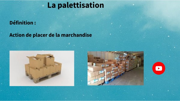 Le plan de palettisation En fonction des dimensions de la palette et de celles des cartons à placer dessus, un plan de palettisaton peut être établi. Il peut également être une exigence du client qui sera livré. L'opérateur/l'opératrice devra s'efforcer de le respecter.