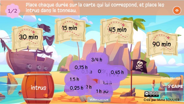Place chaque durée sur la carte qui lui correspond, et place les intrus dans le tonneau.