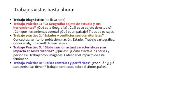 - Trabajo Práctico 4: "Países centrales y periféricos" ¿Por qué? ¿Qué características tienen? Trabajar con textos sobre distintos países.