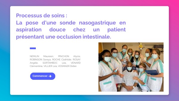Processus de soins : La pose d'une sonde nasogastrique en aspiration douce chez un patient présentant une occlusion intestinale.