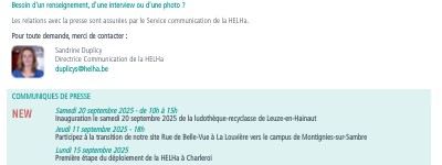 Besoin d'un renseignement, d'une interview ou d'une photo : Les relations avec la presse sont assurées par le service communication de la HELHa