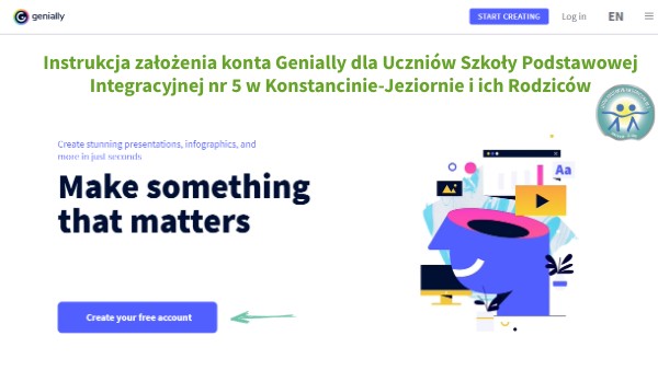 Instrukcja założenia konta Genially dla Uczniów Szkoły Podstawowej Integracyjnej nr 5 w Konstancinie-Jeziornie i ich Rodziców
