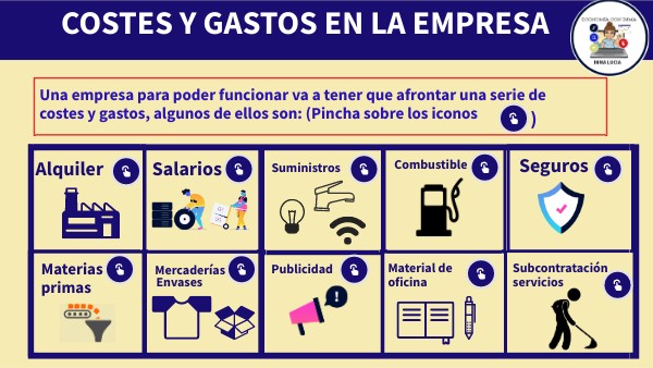 Una empresa para poder funcionar va a tener que afrontar una serie de costes y gastos, algunos de ellos son: (Pincha sobre los iconos