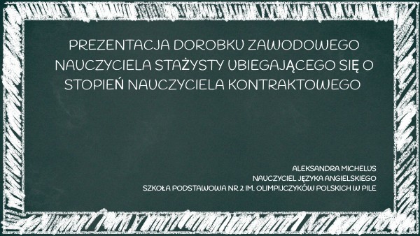 Prezentacja dorobku zawodowego nauczyciela stażysty UBIEGAJĄCEGO SIĘ O STOPIEŃ NAUCZYCIELA KONTRAKTOWEGO