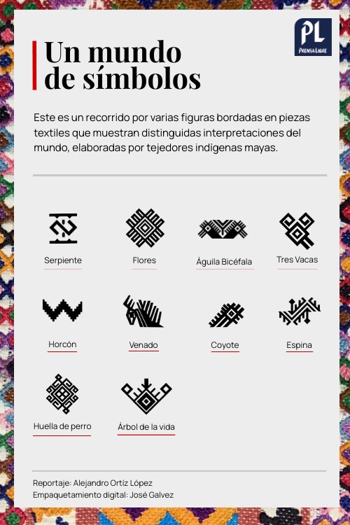 Este es un recorrido por varias figuras bordadas en piezas textiles que muestran distinguidas interpretaciones del mundo, elaboradas por tejedores indígenas mayas.