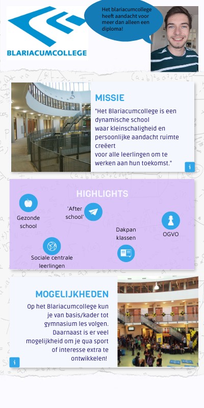 "Het Blariacumcollege is een dynamische school waar kleinschaligheid en persoonlijke aandacht ruimte creëert voor alle leerlingen om te werken aan hun toekomst."