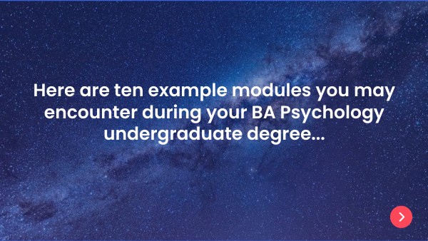 Here are ten example modules you may encounter during your BA Psychology undergraduate degree...