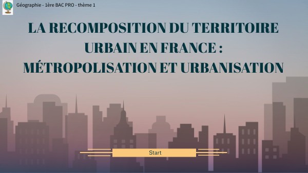 Introduction : La moitié de la population mondiale est urbaine. En France, ce chiffre s’élève à plus de 80% et ne cesse de progresser. Cette urbanisation s’accompagne d’un processus de métropolisation avec des dynamiques urbaines. Problématique du thème : Quelles sont les effets de la métropolisation et de la périurbanisation sur les territoires français et leurs habitants ?