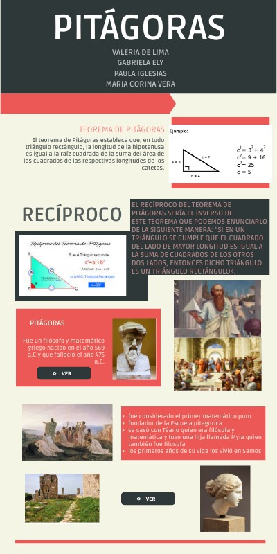 Referencia bibliográfica: • Wikipedia. (Última edición: 1 de junio de 2021). Pitágoras; https:// es.m.wikipedia.org/wiki/Pitágoras • Wikipedia. (Última edición: hace 2 meses). Téano; https:// es.m.wikipedia.org/wiki/Téano • Wikipedia. (Última edición: hace 4 meses). Myia; https:// es.m.wikipedia.org/wiki/Myia • Jesús Gerardo Treviño Rodríguez. (Enero 2020). Pitágoras; http:// etimologias.dechile.net/?Pita.gora • OkDiario. (29 de marzo de 2018). Pitágoras: curriosidades del matemático griego con fobia a las habas; https://www.google.com/ amp/s/okdiario.com/curiosidades/pitagoras-curiosidades- matematico-2040984/amphttps://es.wikipedia.org/wiki/Teorema_de_Pit%C3%A1goras https://www.google.com/url?sa=i&url=https%3A%2F%2Fferminmorales.wordpress.com%2F2011 %2F03%2F13%2Fteorema-de-pitagoras- definicion%2F&psig=AOvVaw1DFrcLT7bBJl3DnfMH5rIh&ust=1624385817073000&source=images &cd=vfe&ved=0CAsQjhxqFwoTCJj31O-qqfECFQAAAAAdAAAAABAb https://teoremapitagoras.com/teorema/reciproco-del-teorema-de- pitagoras#:~:text=El%20rec%C3%ADproco%20del%20teorema%20de%20pit%C3%A1goras%20ser %C3%ADa%20el%20inverso%20de,tri%C3%A1ngulo%20es%20un%20tri%C3%A1ngulo%20rect%C3 %A1ngulo%C2%BB.https://www.google.com/url?sa=i&url=https%3A%2F%2Fteoremapitagoras.com%2Fteorema%2Fr eciproco-del-teorema-de-pitagoras&psig=AOvVaw1IPXW0N9CqoA8NAy- wyJbW&ust=1624371700809000&source=images&cd=vfe&ved=0CAsQjhxqFwoTCKCz67H2qPECFQ AAAAAdAAAAABAD