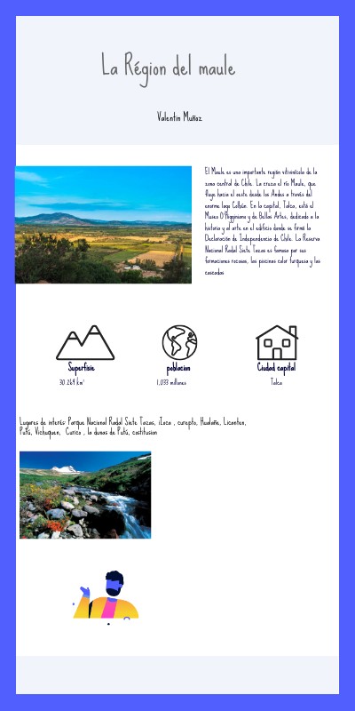 Lugares de interés: Parque Nacional Radal Siete Tazas, iIoca , curepto, Hualañe, Licanten, Putú, Vichuquen, Curico , la dunas de Putú, costitusion