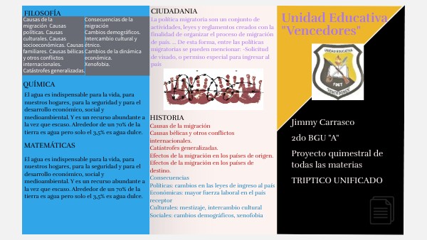 Jimmy Carrasco2do BGU "A" Proyecto quimestral de todas las materias TRIPTICO UNIFICADO