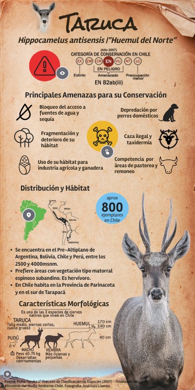 Fuente Ficha Taruka 1º Proceso de Clasificación de Especies (2007) – Finalizado del Ministerio del Medio Ambiente Chile. Fotografia:José Luis Lineros