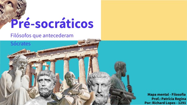 Nesta apresentação, você verá um mapa mental sobre os filósofos pré-socráticos, além de uma linha do tempo extra que facilitará a compreensão da ordem dos acontecimentos
