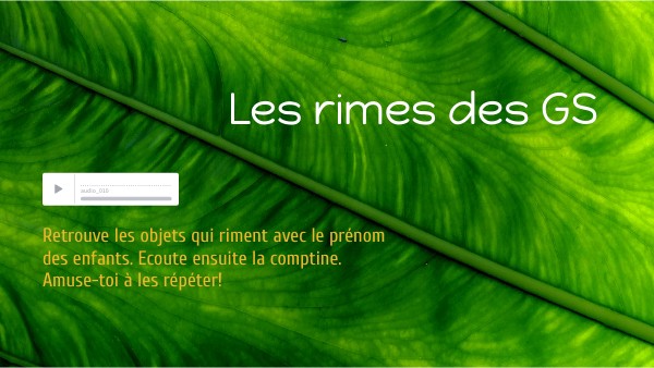 Retrouve les objets qui riment avec le prénom des enfants. Ecoute ensuite la comptine. Amuse-toi à les répéter!